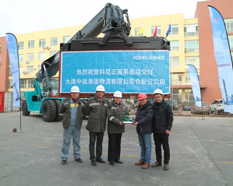 12月22日,科尼正面吊終于來到了美麗的大窯灣,成功交付大連中遠(yuǎn)海運(yùn)物流有限公司倉配分公司(簡(jiǎn)稱“遠(yuǎn)洋場(chǎng)站”),為老客戶補(bǔ)充新力量。遠(yuǎn)洋場(chǎng)站總經(jīng)理司南女士,KCL北方區(qū)總經(jīng)理任道紅先生等相關(guān)負(fù)責(zé)人出席交付儀式。