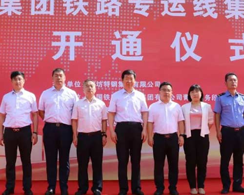 中國鐵路濟(jì)南局集團(tuán)有限公司青島車務(wù)段段長趙敏發(fā)表祝賀致辭,指出濰坊特鋼集團(tuán)作為濰坊市的企業(yè),在踐行社會責(zé)任和助力“雙碳”工作方面一直走在前列。今天的開通儀式,標(biāo)志著濰坊特鋼集團(tuán)在清潔運輸“公轉(zhuǎn)鐵”上升到了新的臺階,祝愿特鋼集團(tuán)在建設(shè)綠色標(biāo)桿、打造百年綠色發(fā)展企業(yè)之路上,繼續(xù)闊步前行。