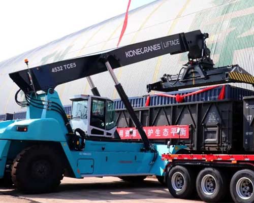 領(lǐng)導(dǎo)們在現(xiàn)場進(jìn)行了合影留念,并與在場的全體職工一起觀摩了集裝箱起吊過程。