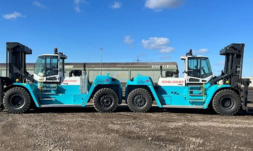 針對(duì)客戶的特殊工況需求,科尼對(duì)SMV 33-1200 C重型叉車進(jìn)行了優(yōu)化:配備了2.8米的加固貨叉(比標(biāo)準(zhǔn)長(zhǎng)80厘米),堅(jiān)固耐用,能夠安全平穩(wěn)處理不同負(fù)載的長(zhǎng)鋼產(chǎn)品;采用重型加固門架以及帶有額外支撐滾輪和軸承的托架,確保長(zhǎng)鋼起升所需的穩(wěn)定性及運(yùn)輸?shù)撵`活性,幫助客戶更好應(yīng)對(duì)業(yè)務(wù)挑戰(zhàn)。