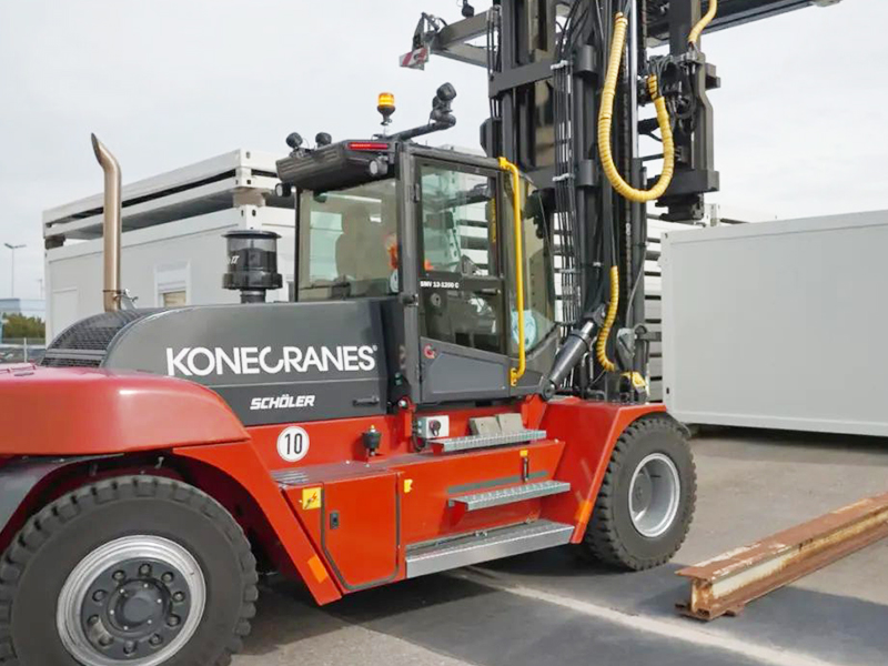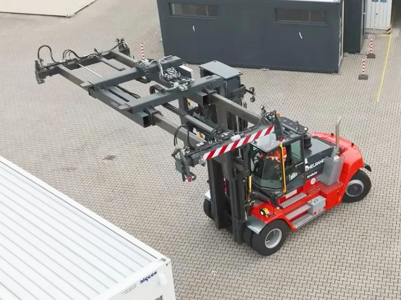 目前,Algeco擁有15輛科尼SMV12-1200叉車,這些可靠的設(shè)備具有箱式底盤和短軸距,具有出色的機動性,可以安全輕松地起升高達12噸的重物。每輛叉車都是為超大負(fù)載量身定制的,并配有定制吊具,可以處理各種集裝箱和模塊化建筑材料。高達9.8米的門架,可堆疊三個集裝箱。
